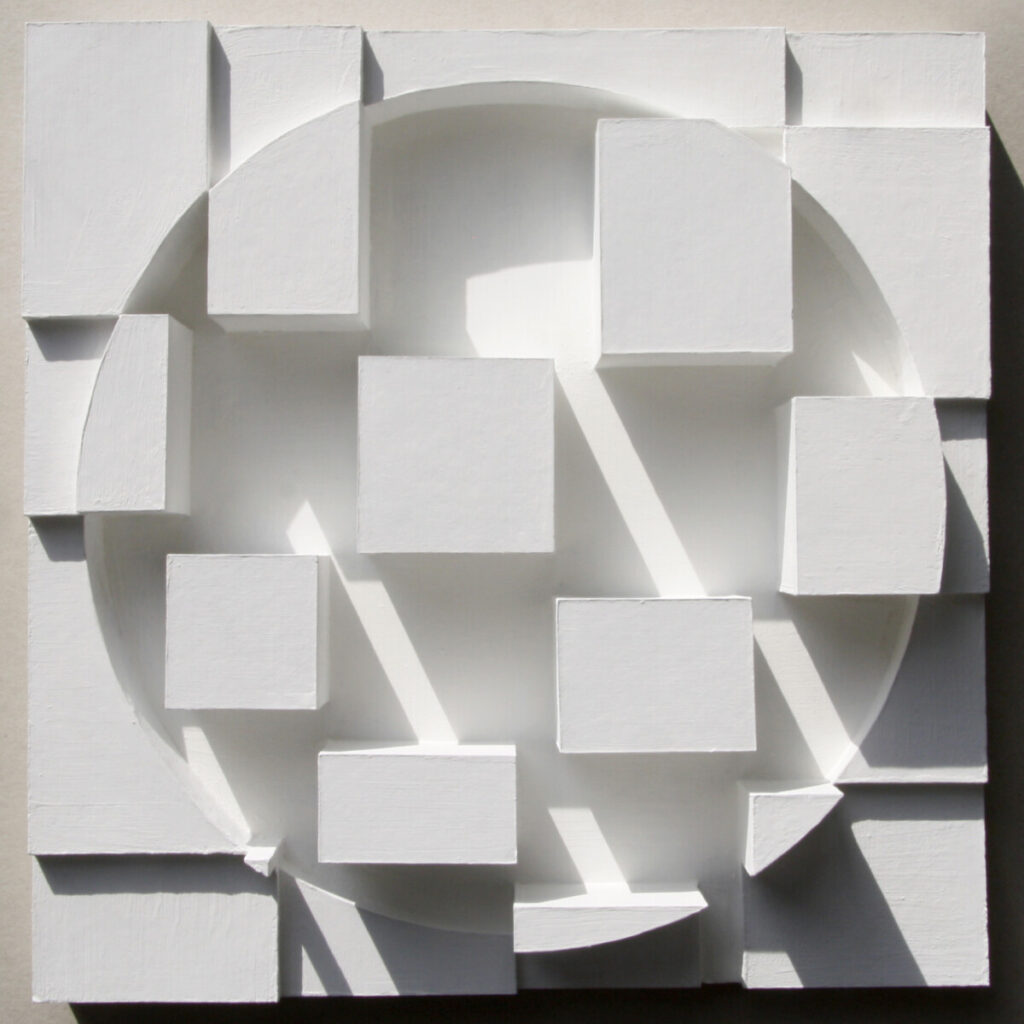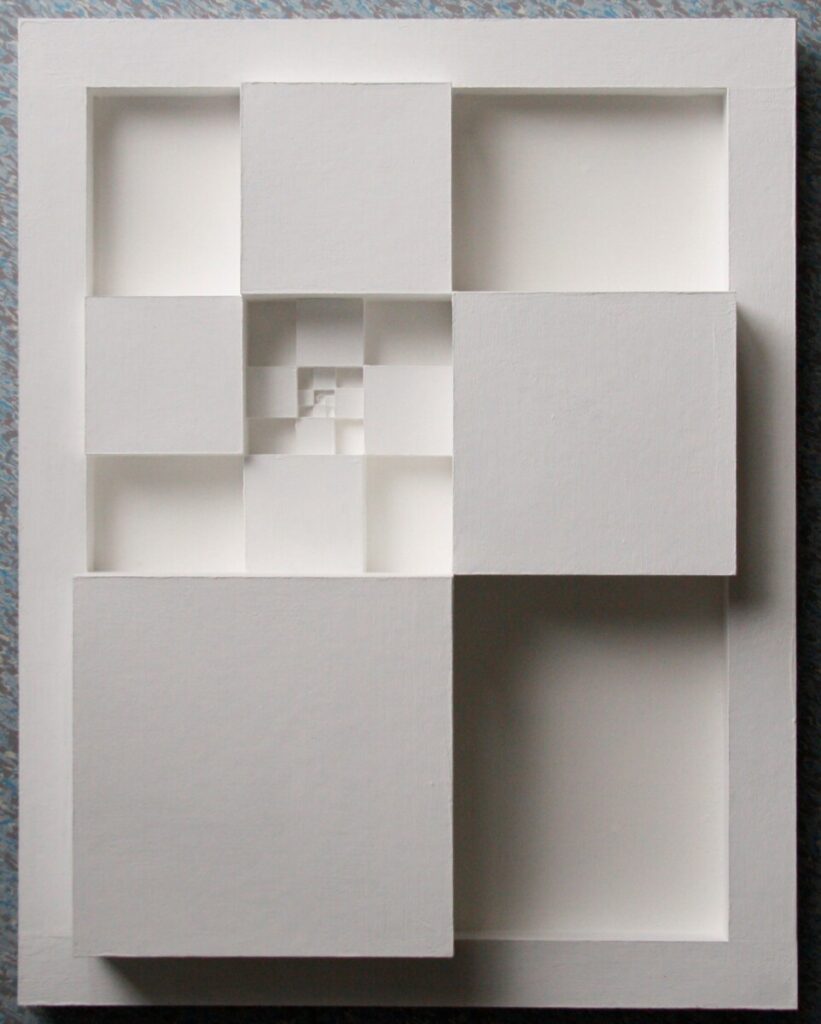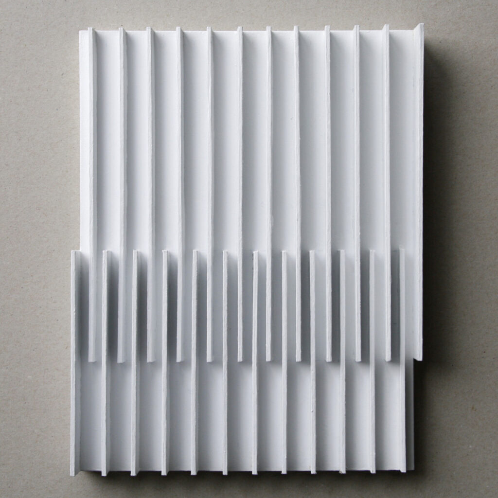 Molitoriz is het pseudoniem van Ton Smulders. Ton is opgeleid als architect. Zowel in architectuur als in zijn vrije werk speelt hij met massa en ruimte. Reliëfs met verschuivende schaduwen en zachte reflecties. Bijna fundamentele onderzoeken. De massa zonder referentie: wit. Zoals architectonische maquettes in wit nog geen uitspraak willen doen over hoe het precies gemaakt gaat worden. De vorm als massa. En deze wordt alleen ervaren door de ruimte die er omheen is. Hoe de kleine ruimte tussen massa’s eigen ruimte gaat innemen. En als deze te groot wordt toch weer onderdeel wordt van de grote ruimte. Hoe het licht opgegeten wordt door spleten. Hoe donker wit kan worden. Hoe het toevoegen van toeval gestuurd kan worden en toch onvoorspelbaar blijft.