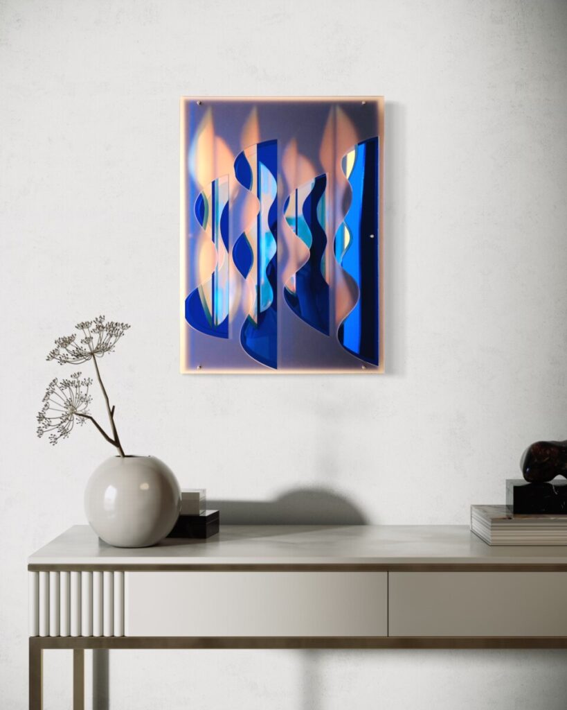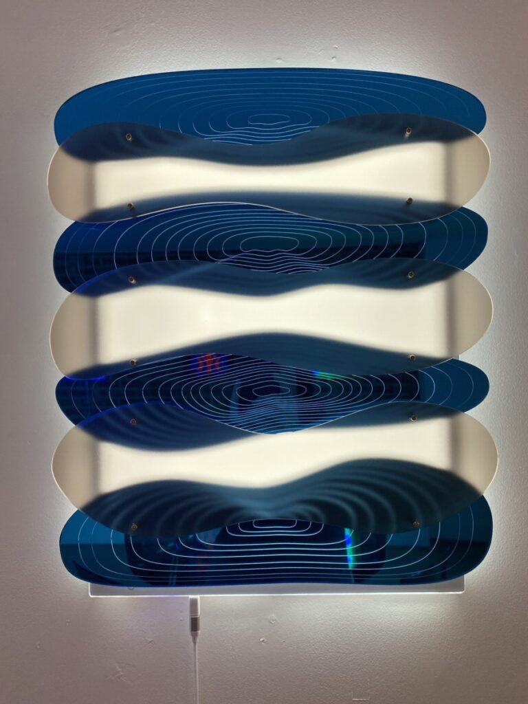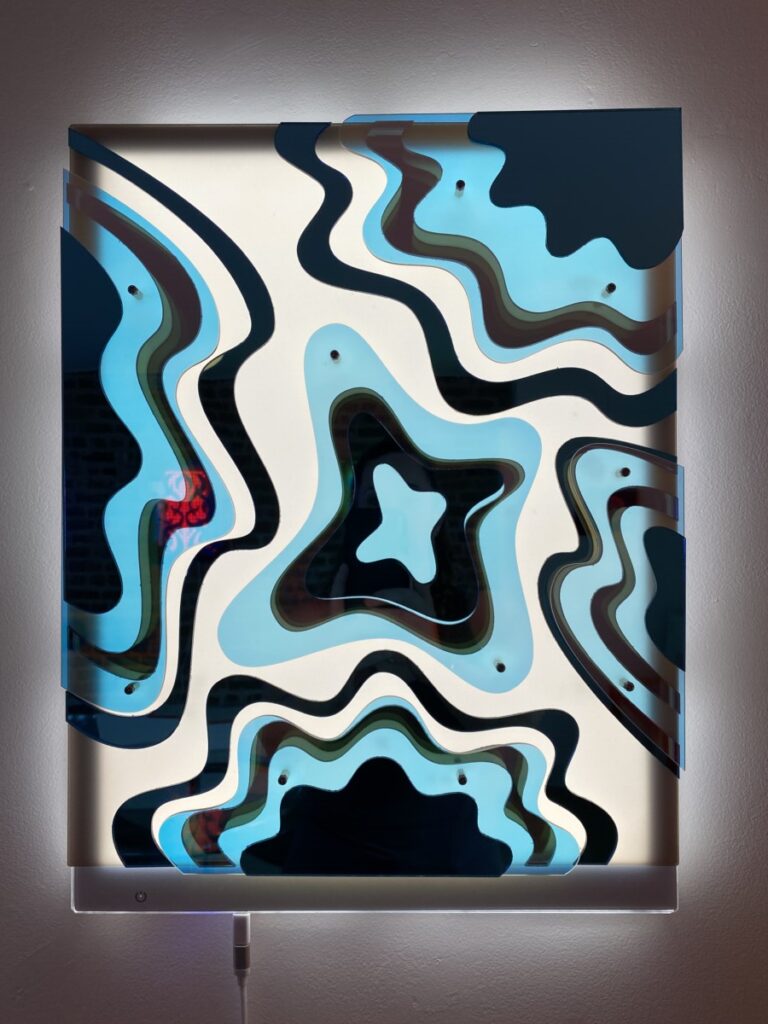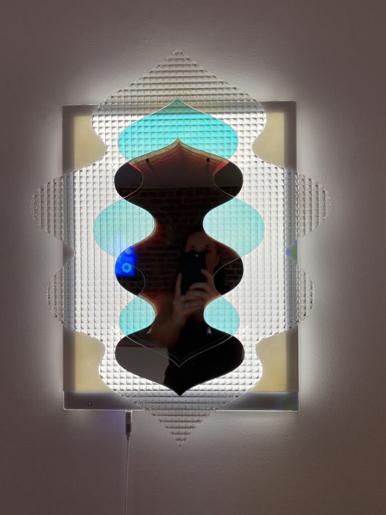 Materiaal: Acrylic, mirror, rechargeable LEDs, Motion switch
