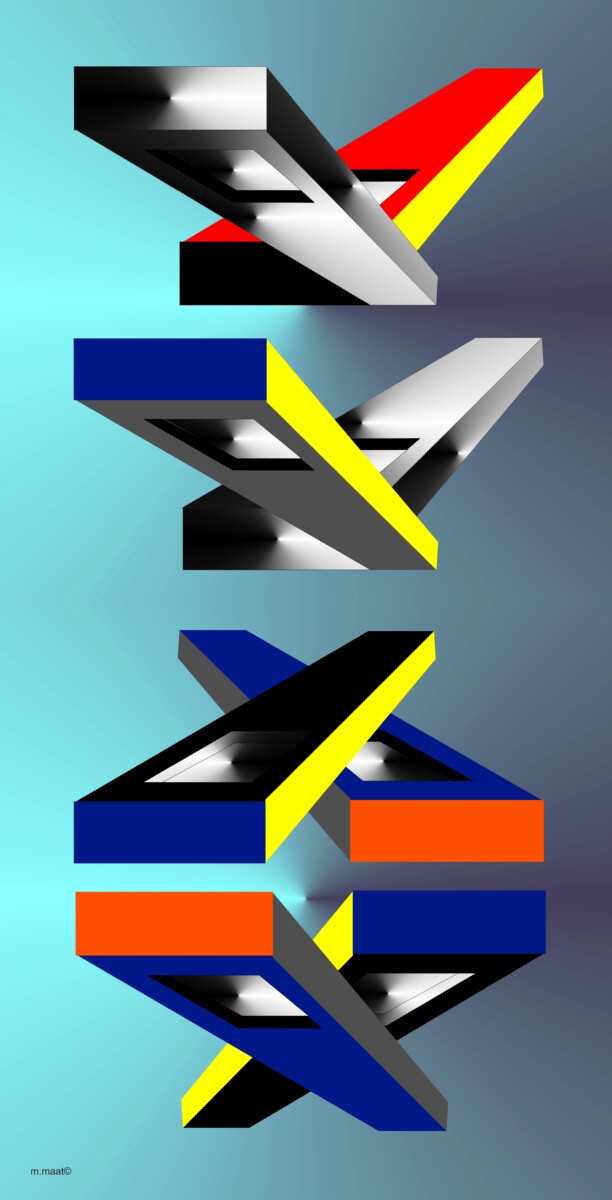 Computer Art Rechthoek in perspectief en viervoud nr.2 [grijs]