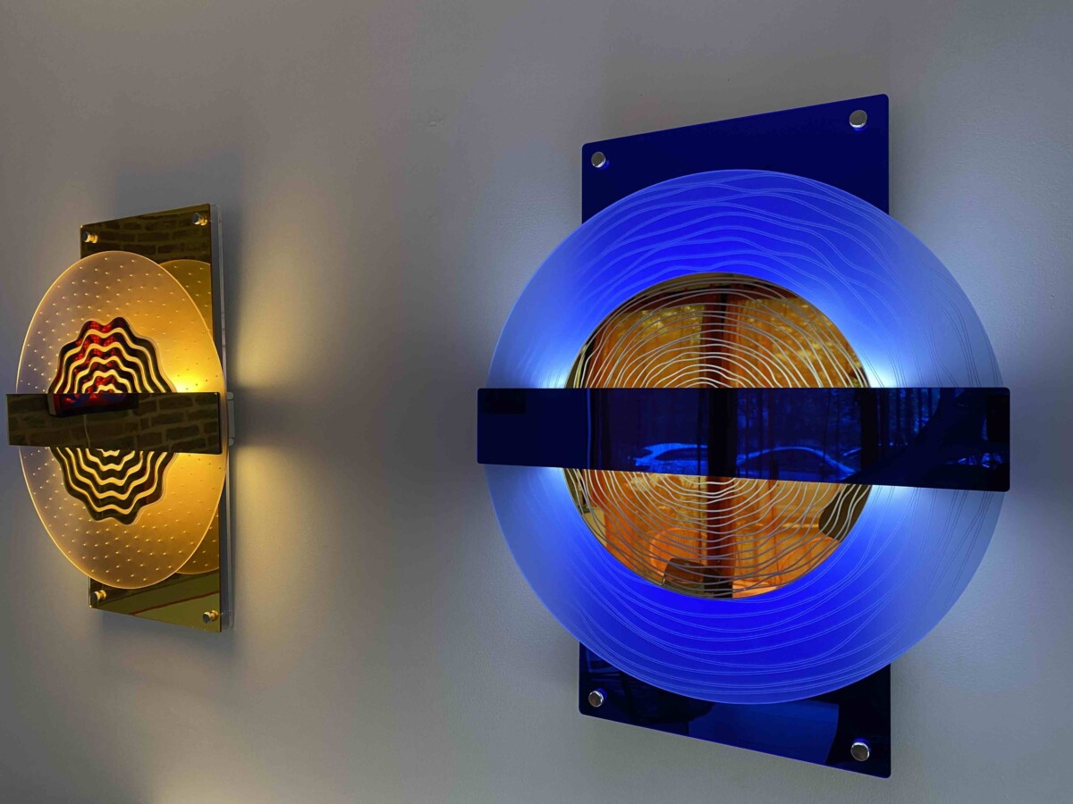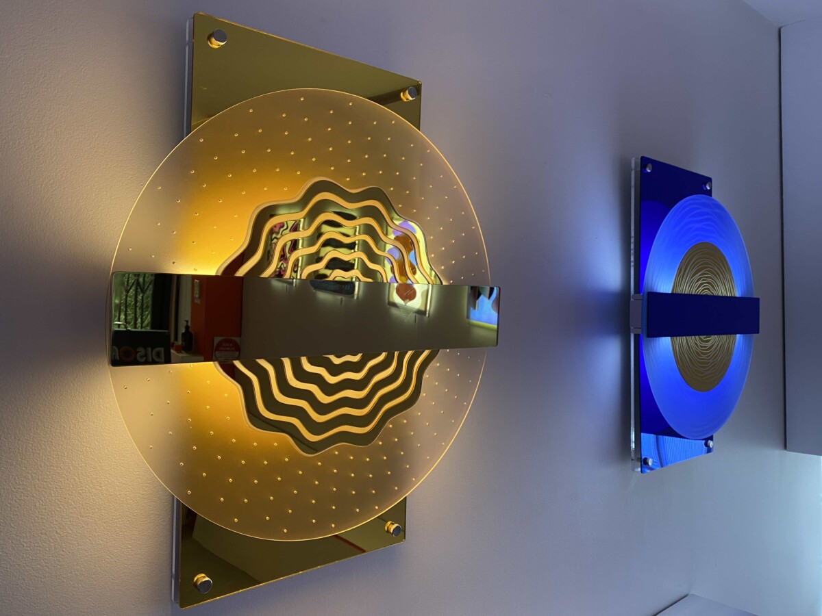 Materiaal: Acrylic, mirror, rechargeable LEDs, Motion switch